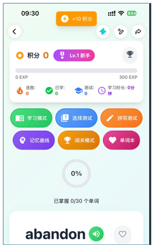 包括英文发音,记忆曲线,闯关模式,积分奖励,单词本,游戏设定,颜色设定等差不多8-9个功能。直到最后加的几个功能灵光都承认"失败"为止