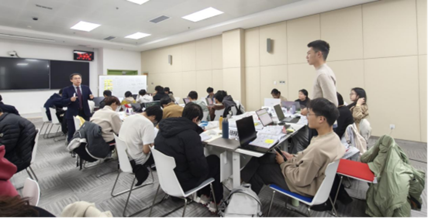 课堂现场气氛热烈,互动频繁,同学们积极交流,主动探讨学习。培训课堂不再是单向的理论知识灌输,而是充满实践与创新思维碰撞的研讨。培训学员、我校2025级本科生王子健表示:"学校举办的这次丰富充实的培训让我大开眼界、收获满满!课堂上,老师和同学一起把经典TRIZ与AI工具结合,让创新过程像开了加速器。同时,能和来自优秀企业的前辈们一起探讨学习,他们分享的一线案例和真知灼见,带来了无数课本上没有的灵感火花,让我对产教融合有了切身的体会,感觉自己的思维完成了一次真正的跃迁!"